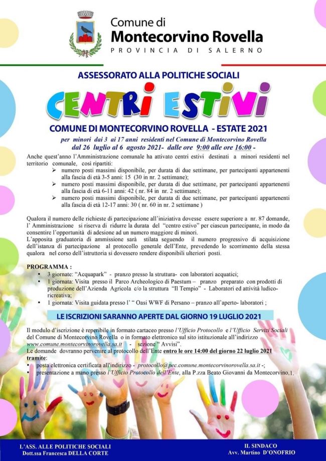 Si è concluso con una bellissima festa l’anno scolastico per i piccoli alunni del micronido comunale di Montecorvino Rovella. Nel corso della festa, il sindaco Martino D’Onofrio e l’assessore…