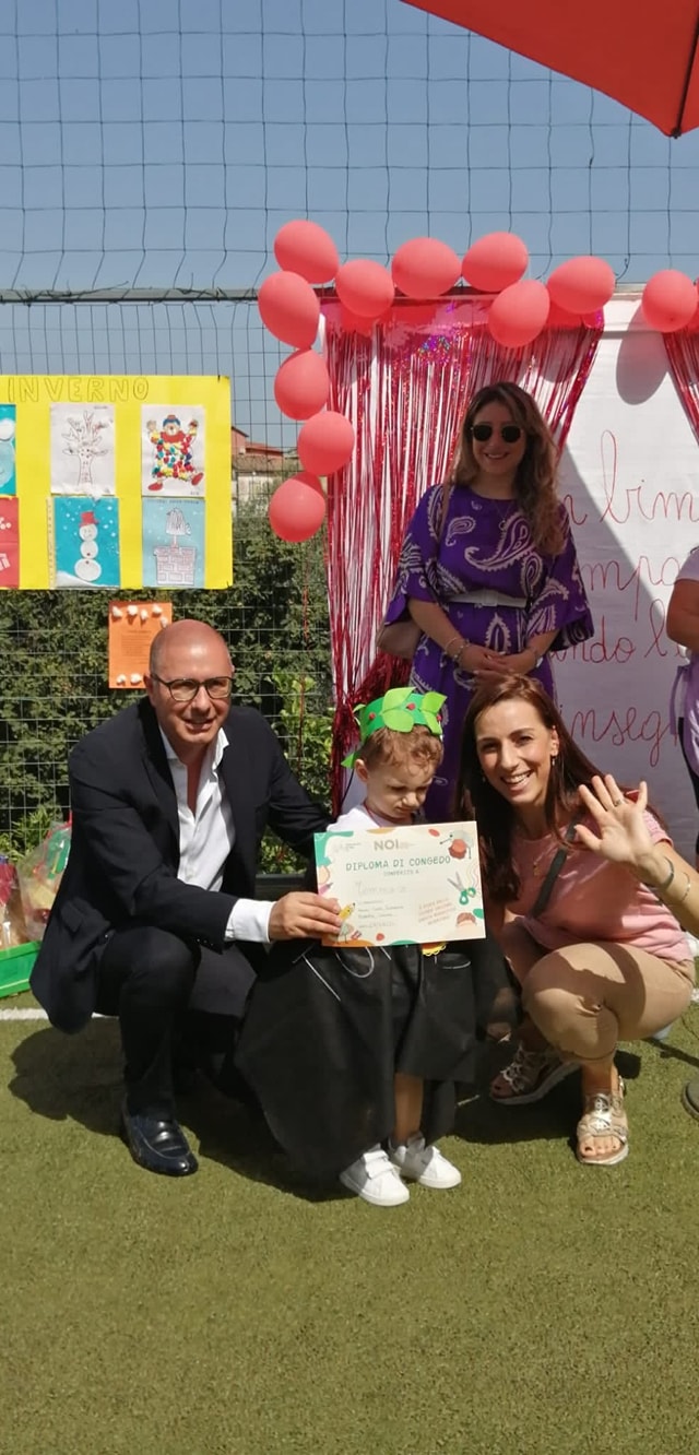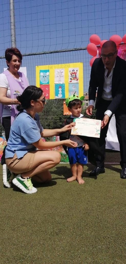 Nel corso della festa, il sindaco Martino D’Onofrio e l’assessore alle Politiche Sociali hanno consegnato ai piccoli che il prossimo anno si iscriveranno alla scuola d’infanzia gli attestati realizzati dalla Cooperativa sociale Noi in ricordo dei bei momenti passati insieme.